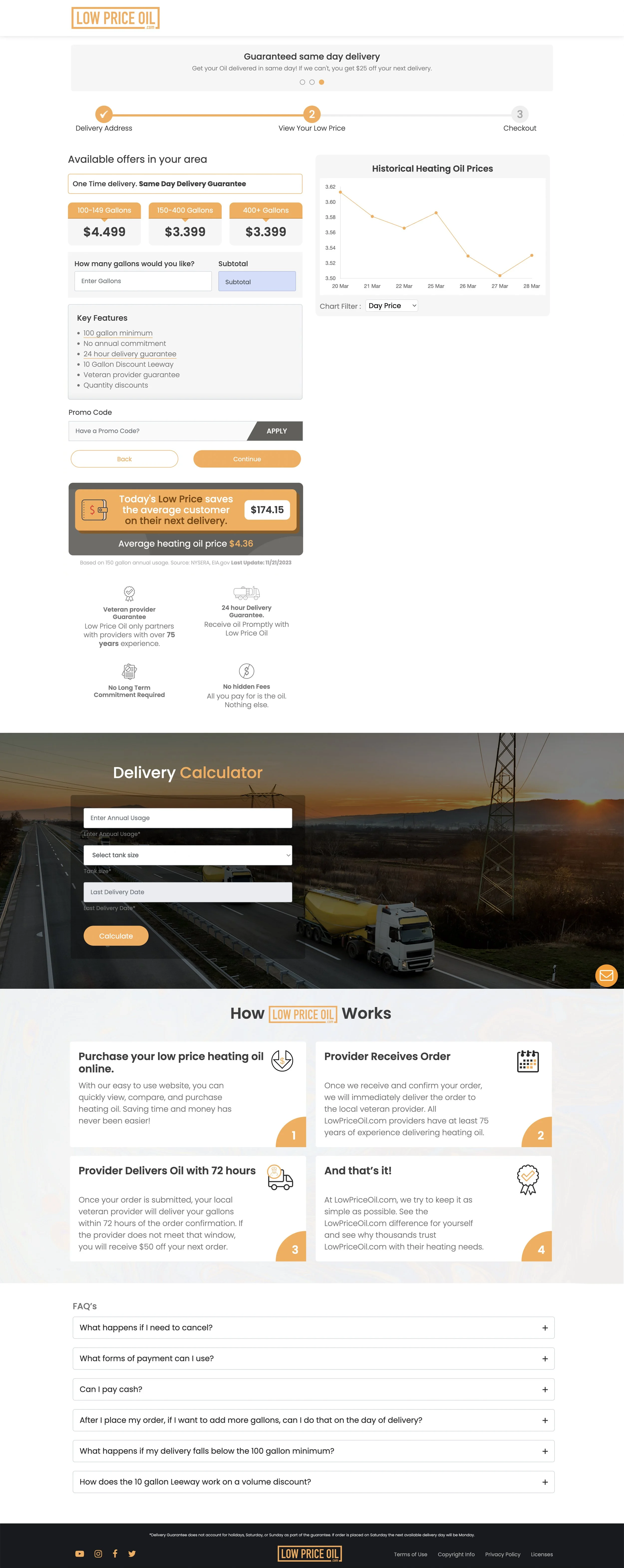 So I streamlined the process. Most info about the products and the company will be on the main page, easily accessible via navigation. Just one CTA that leads them through the process of eligibility and oil price. From there it’s just a couple steps where LowPriceOil.com gathers customer information, customers find out their low price and can schedule a delivery, and purchase and have it installed the next day by a trained technician. The creation of this new service led to an additional source of revenue of approximately $5.7 million in the first year of launch.
